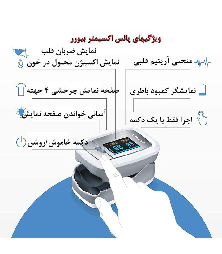 ویژگی های دستگاه پالس اکسیمتر بیورر :