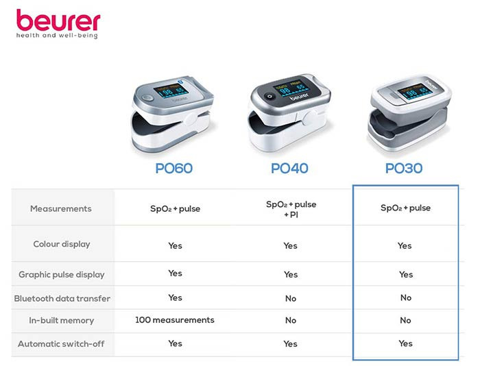 نمايشگر ضربان قلب پيشرفتهي PO30 بیورر که توسط شرکت «بيورر» (Beurer) توليد شده است یکی از دستگاههای اکسیژن سنج قابل قبول در بازار تجهیزات بهداشت و سلامت و پزشکی کشور میباشد.پالس اکسیمتر بیورر PO30 علاوه بر ميزان ضربان قلب، ميتواند ميزان اکسيژن محلول در خون را نيز اندازهگيري کند. اين دستگاه کوچک و سبک طراحي شده است بنابراين ميتوان آن را در خانه، بيرون از خانه و حتي بههنگام پيادهروي استفاده کرد. براي PO30 يک کمربند در نظر گرفته شده است تا استفاده از آن در ورزشهاي مختلف مانند کوهنوردي و اسکي آسان شود. همچنين صفحه نمايش بزرگ اين محصول استفاده از آن را آسانتر ميکند. بنابراين اگر به دنبال يک نمايشگر ضربان قلب پيشرفته هستيد، PO30 را ميتوانيد انتخاب کنيد.