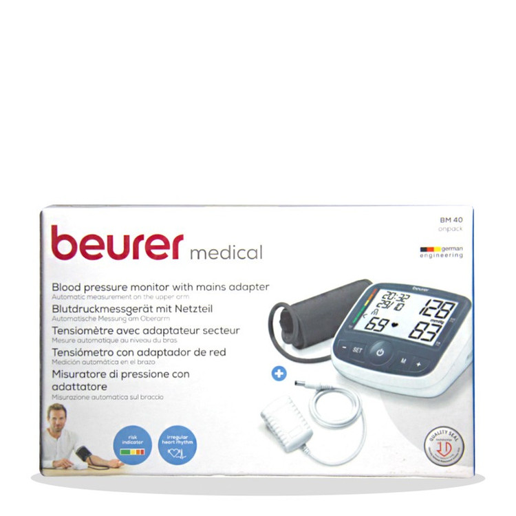 فشارسنج ديجيتالي BM40 از کمپاني بيورر از نمونه هاي بازويي اين برند نامي آلماني است که در توليد دستگاه هاي سلامت و بهداشت يکي از برترينها در تمامي دنيا بشمار ميآيد.BM40 بهینه شده BM20 میباشد که یکی از پر فروش ترین فشارسنج های این برند بوده است.