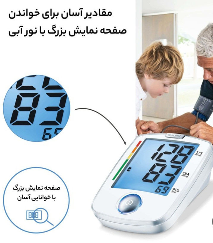 امروزه حدود 70% از مردمی که سن آنها بالای پنجاه سال است به نوعی با مشکل فشارخون چالش دارند و نیازمند فوریتهای پزشکی در ارتباط با مسئله فشارخون بالا میباشند.فشارخون پارامتری بسیار حیاتی برای بقای انسان میباشد و اکنون دستگاه دیجیتال دقیق بیورر مدل bm44 beurer با داشتن قابلیت اندازه گیری ضربان قلب،فشارخون بالای دیاستولیک و فشارخون پائین سیستولیک،نمایشگر ریسک،نمایشگر آریتمی و داشتن صفحه نمایش بزرگ و نورانی به کمک شما آمده است تا در منزل به اندازه گیری فشارخون خود بپردازید و با داشتن حافظه برای چهار کاربر میتوانید مقادیر را برای بررسی دقیق تر نگه داری فرمایید.
