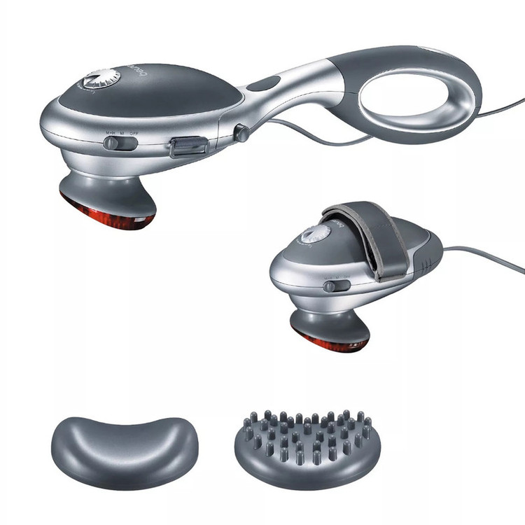 ماساژور mg70 با مادون قرمز/ماساژ ضربه ای نافذ برای رفع خستگی/کاربرد های متنوع به خاطر دسته جدا شونده/تنظیم آسان شدت ماساژ/امکان انتخاب جداگانه گرمای مادون قرمز/دو قطعه قابل تعویض(قطعه دارای برآمدگی,قطعه نرم)/2 عملکرد(ماساژضربه ای، ماساژ ضربه ای با گرمای مادون قرمز)/دسته جدا شونده ضد لغزش با سطح نرم/22 وات